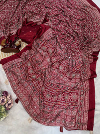Heritage Ajrakh-Inspired Printed Saree with M...