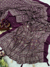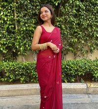Wine Maroon Saree with Crystal Stone Work Bor...