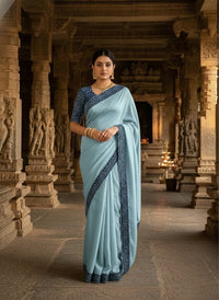 Ravishing Sky Sequence Work Fandy Silk Saree ...