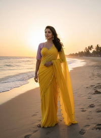 Luxury Hand-Embroidered Chiffon Saree with De...