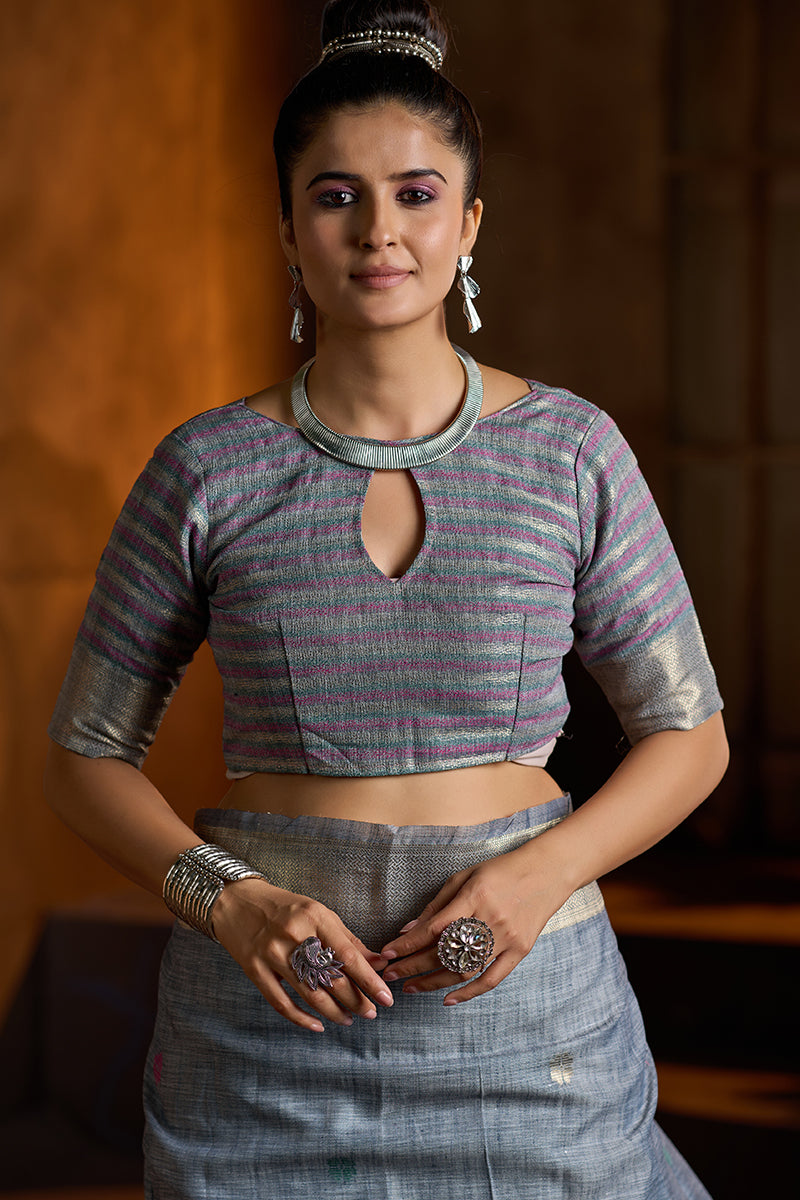 Aplomb Grey Cotton Silk Saree With Devastating Blouse Piece