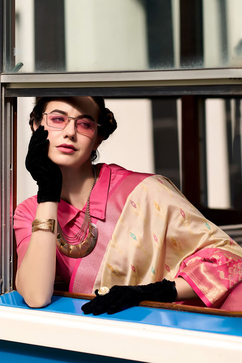 Beleaguer Beige Soft Banarasi Silk Saree With Moiety Blouse Piece