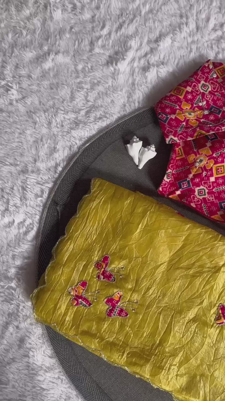 Butterfly Charm Crush Tissue Saree with Designer Bandhani Blouse (4 Color Options Available)