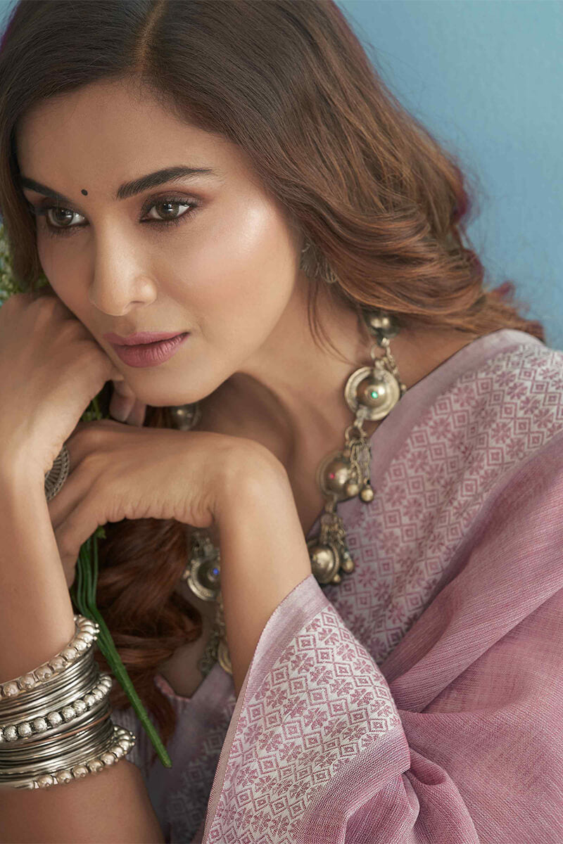Increase Quantity for Deserving Lavender Lucknowi Silk Saree With Blooming Blouse Piece