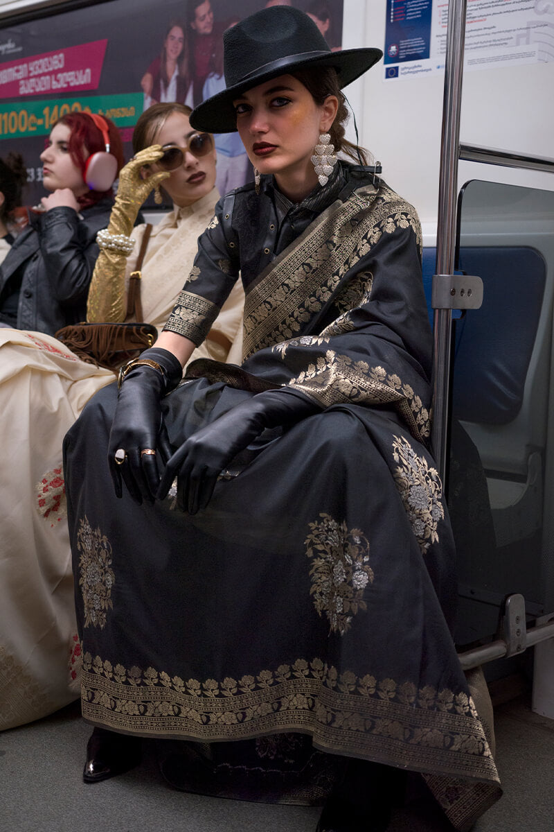 SAREE SPECIFICATIONS: Fabric: Soft Banarasi Silk Colour: Black Work Type: Jacquard Weaving