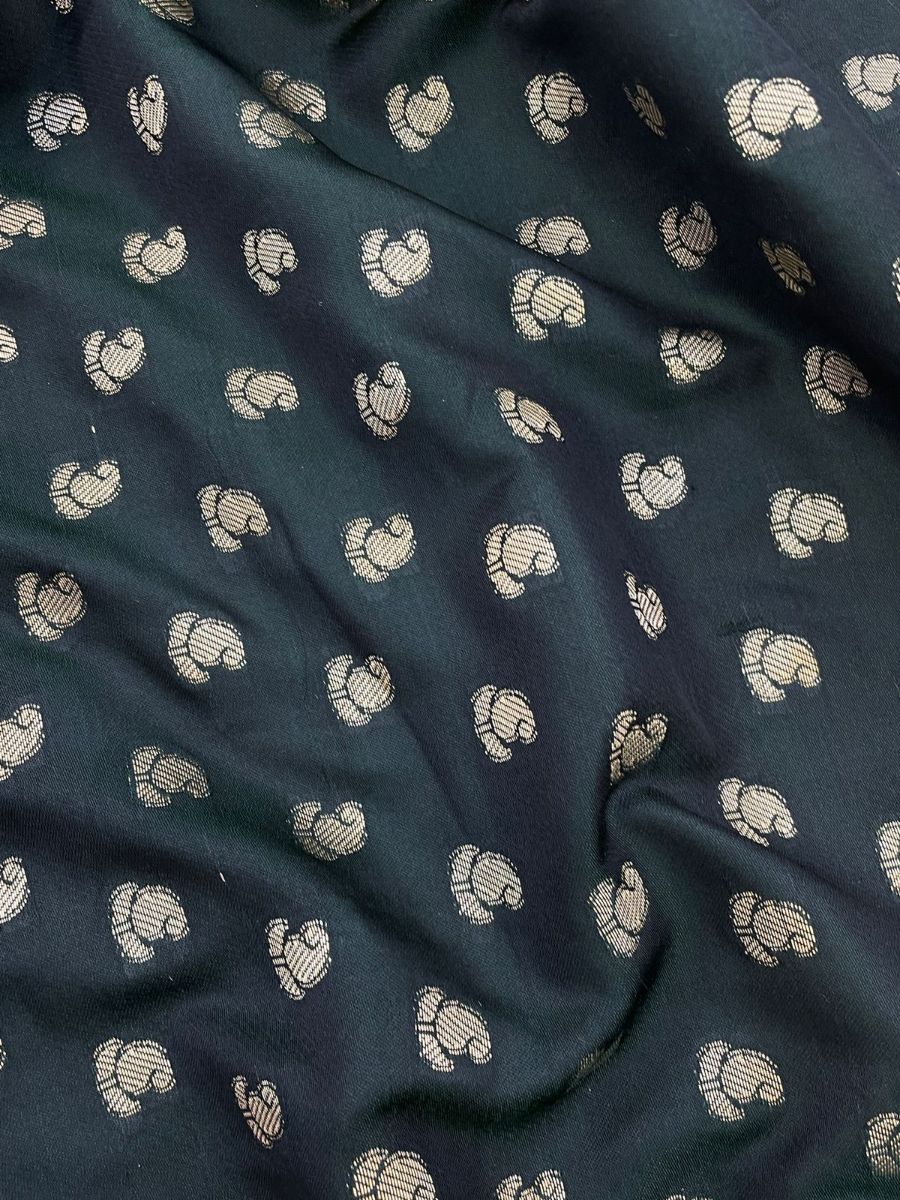 BLOUSE SPECIFICATION: Fabric: Banarasi Satin Silk Colour: Dark Green Work Type: Jacquard Weaving Stitching Type: Unstitched
