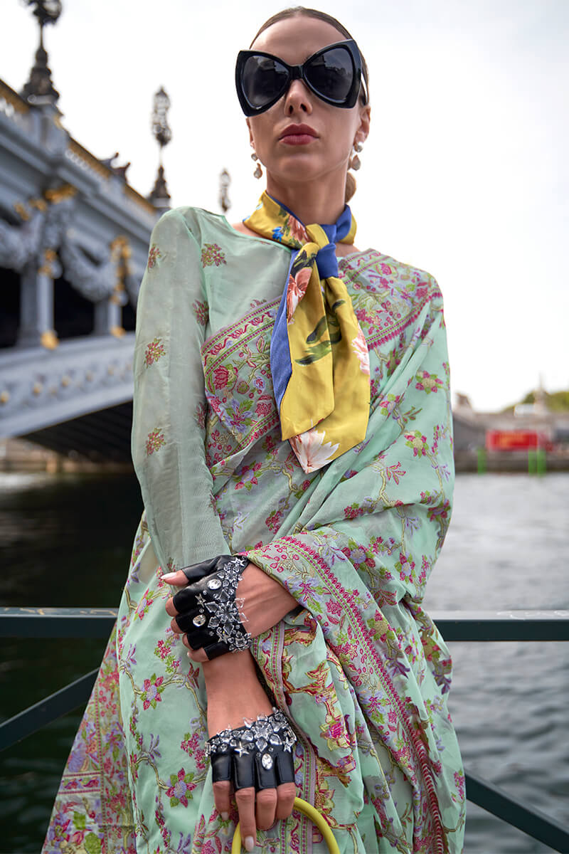 Enchanting Sky Pashmina saree With Proficient Blouse Piece
