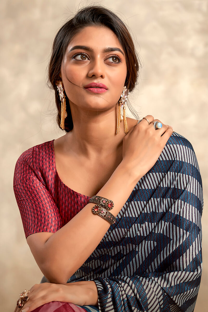 BLOUSE SPECIFICATION: Fabric: Soft Silk Colour: Grey Work Type: Digital Printed Stitching Type: Unstitched