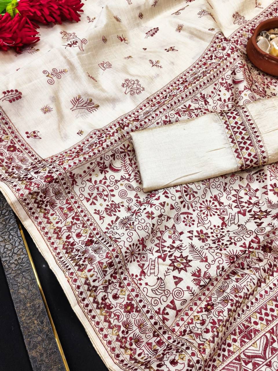 SAREE SPECIFICATIONS: Fabric: Tussar Silk Colour: Off White Work Type: Embroidery Work