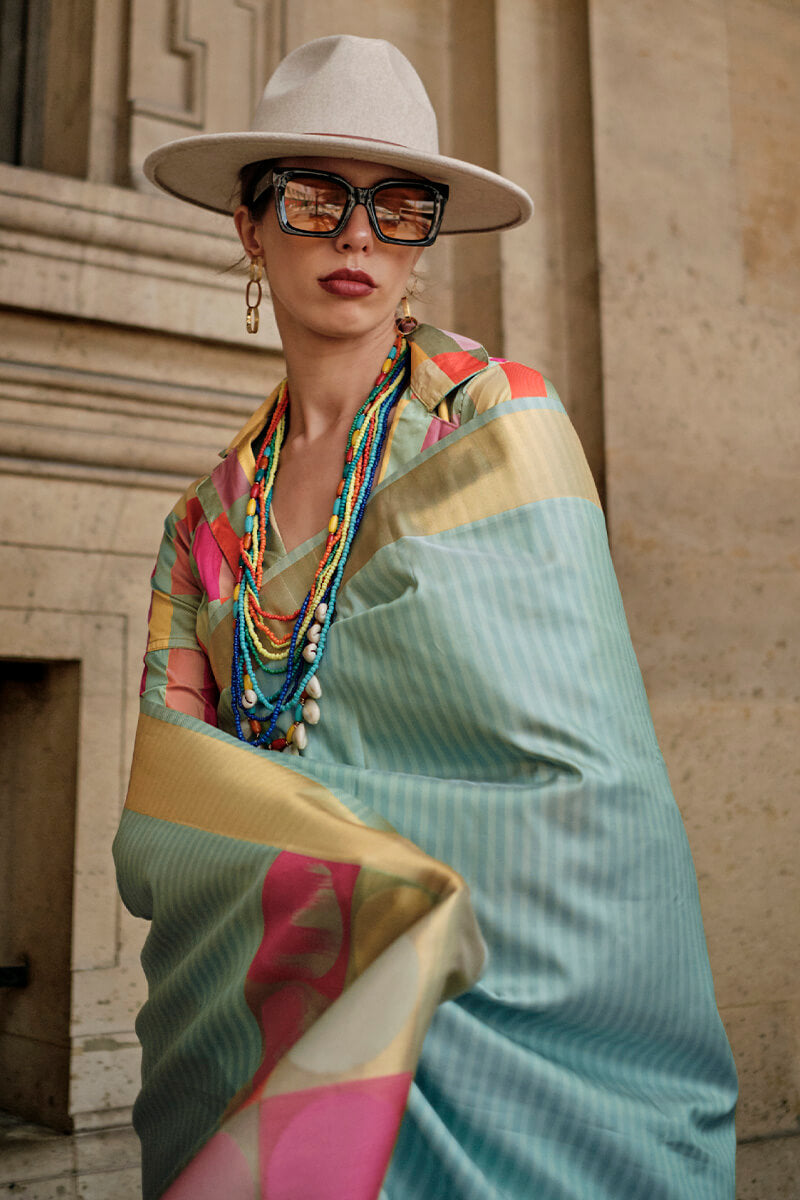 Girlish Sky Soft Banarasi Silk Saree With Unique Blouse Piece