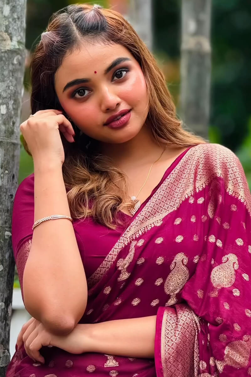 Glorious Wine Soft Silk Saree With Jazzy Blouse Piece
