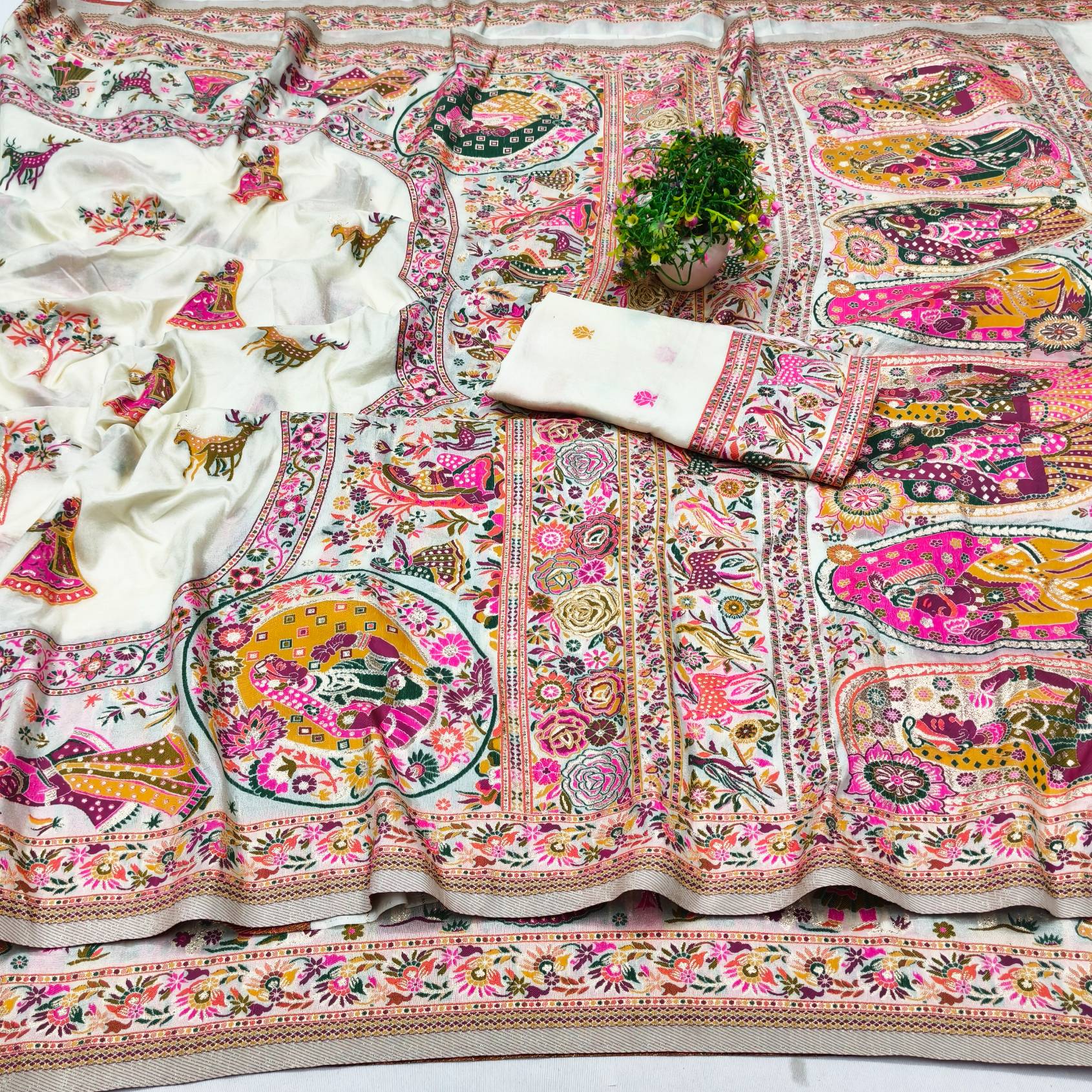Gorgeous Beige Nylon Dola Pashmina Saree With Prodigal Blouse Piece