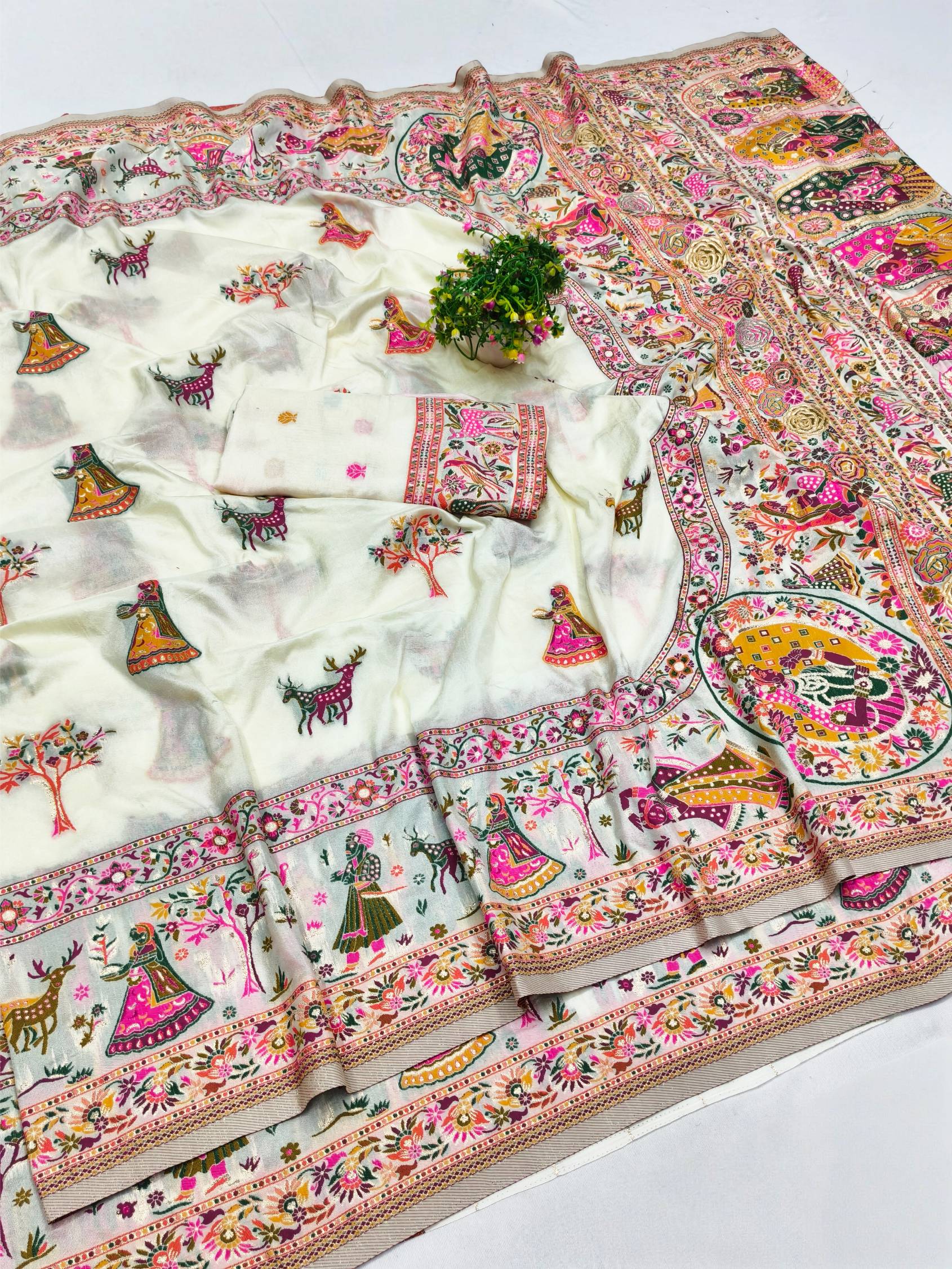 Enhance your ethnic wardrobe with our Nylon Dola Pashmina Silk Saree. Crafted with a blend of premium quality nylon, silk, and pashmina fabric, this saree exudes elegance and grace. The intricate design and intricate embroidery on the saree adds a touch of sophistication to your ensemble. Perfect for special occasions or festive gatherings, this saree is sure to make you stand out from the crowd.