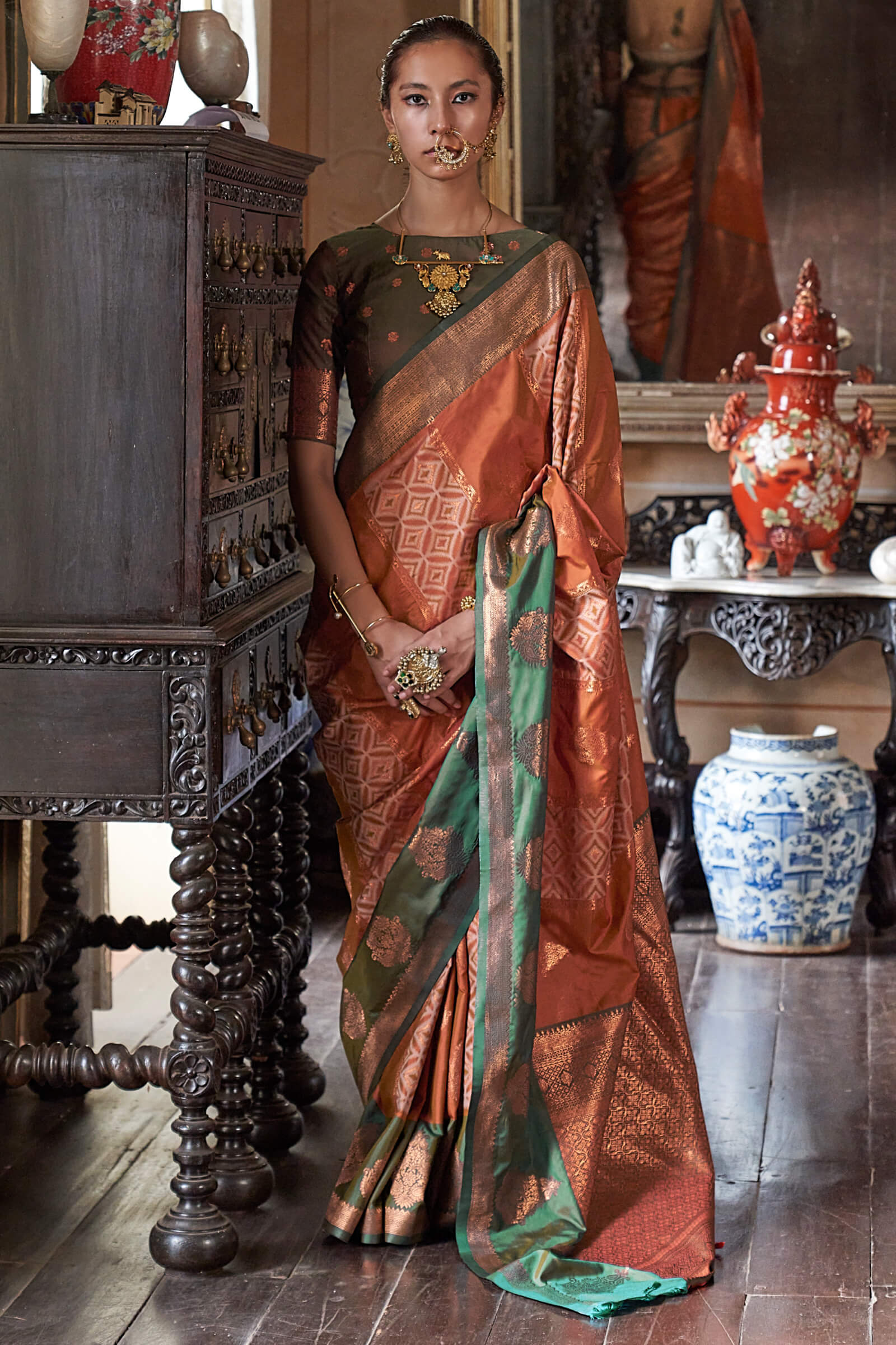 Gossamer Orange Soft Banarasi Silk Saree With Tantalizing Blouse Piece