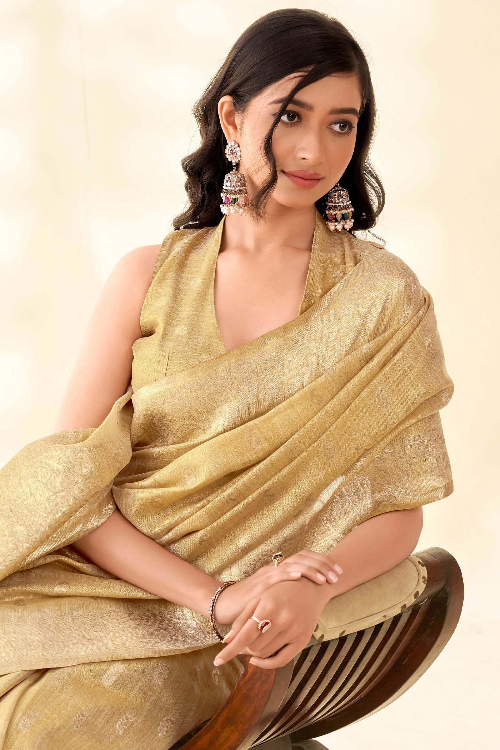 Wrap yourself in elegance with our Soft Banarasi Tissue Silk Saree! Made from high-quality silk material, this saree drapes beautifully and feels incredibly soft against your skin. Whether you're attending a wedding or a festive celebration, this saree is sure to make a stylish statement.