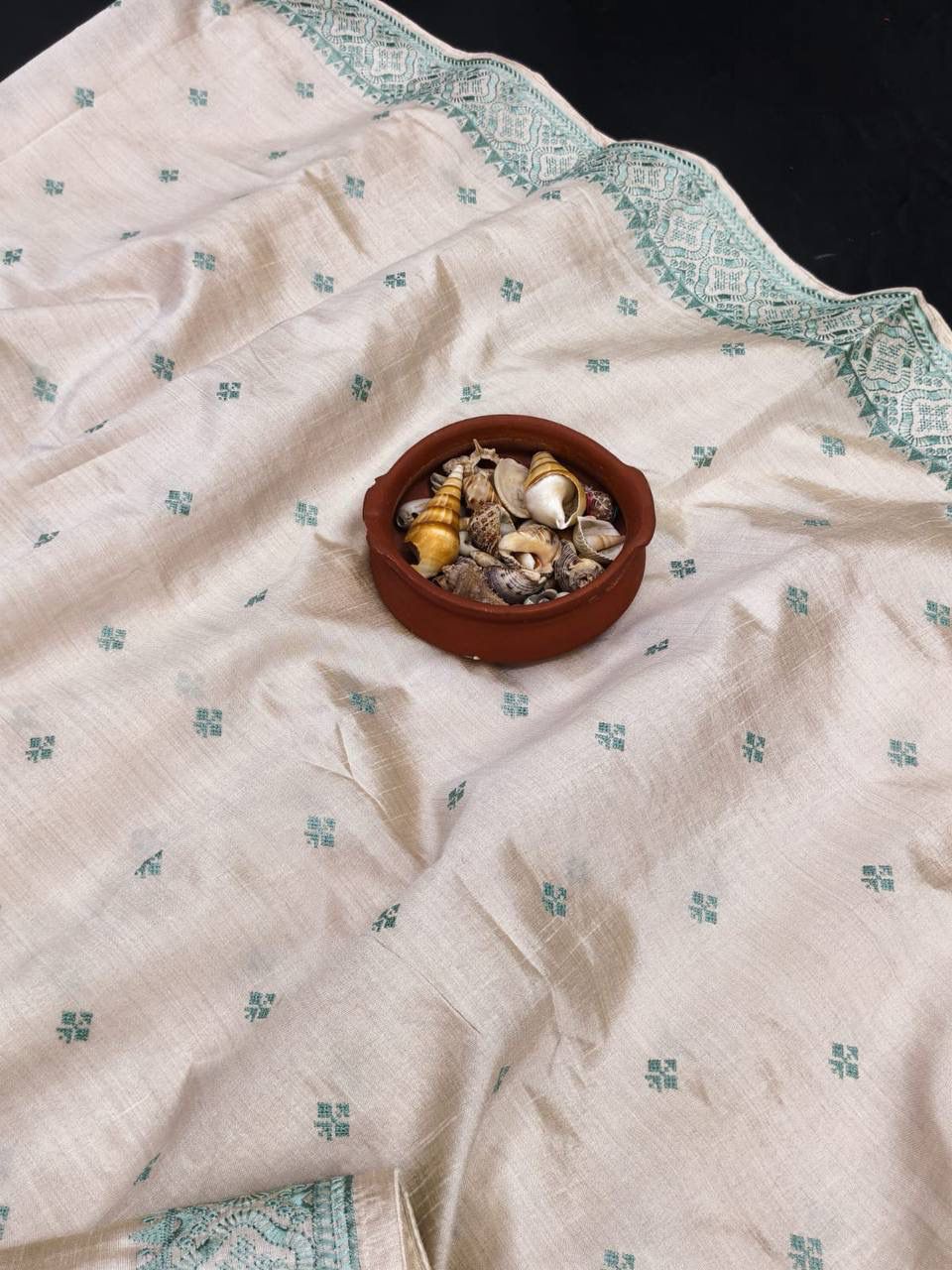SAREE SPECIFICATIONS: Fabric: Tussar Silk Colour: Off White Work Type: Embroidery Work