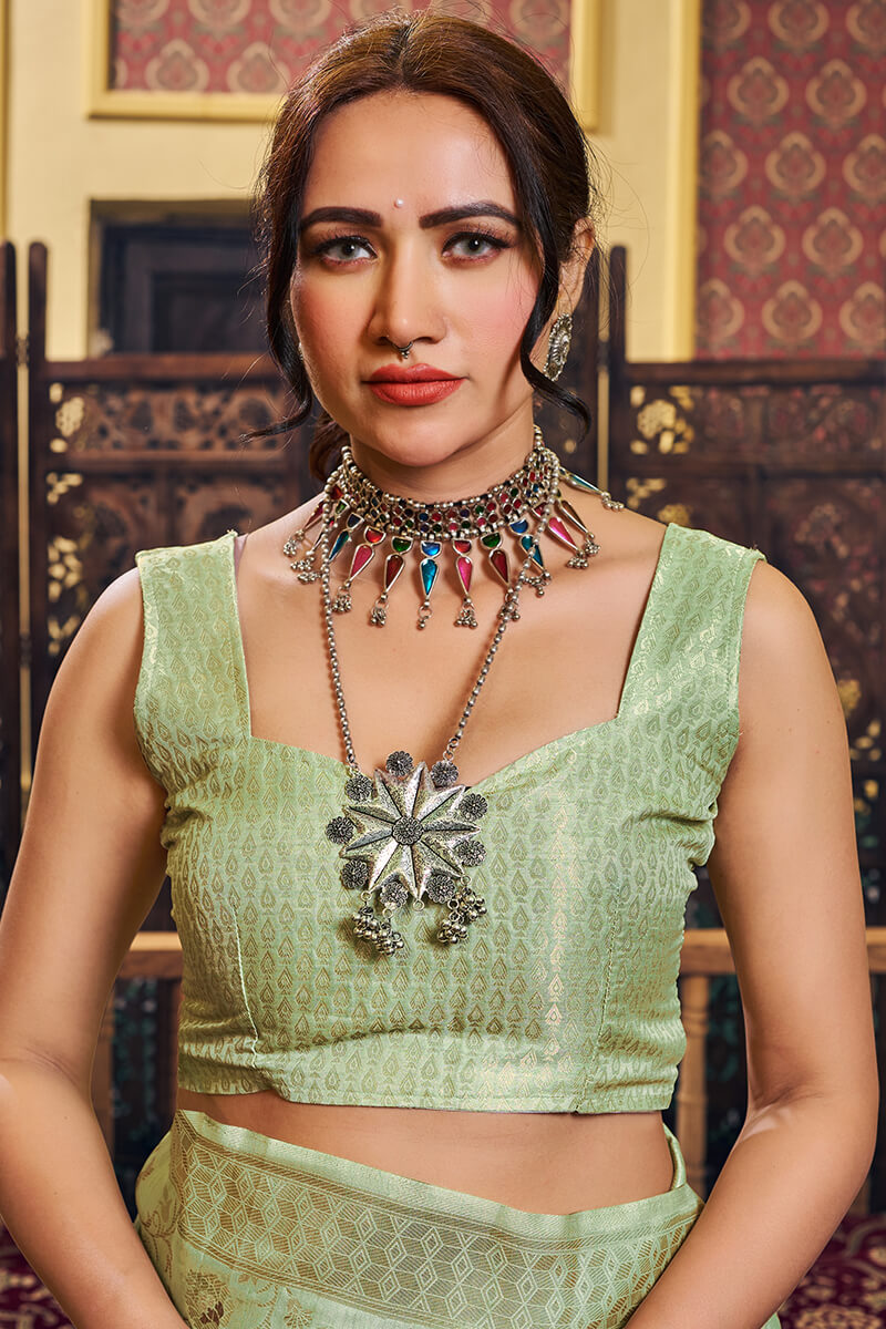 Lagniappe Sea Green Soft Banarasi Silk Saree With Comely Blouse Piece