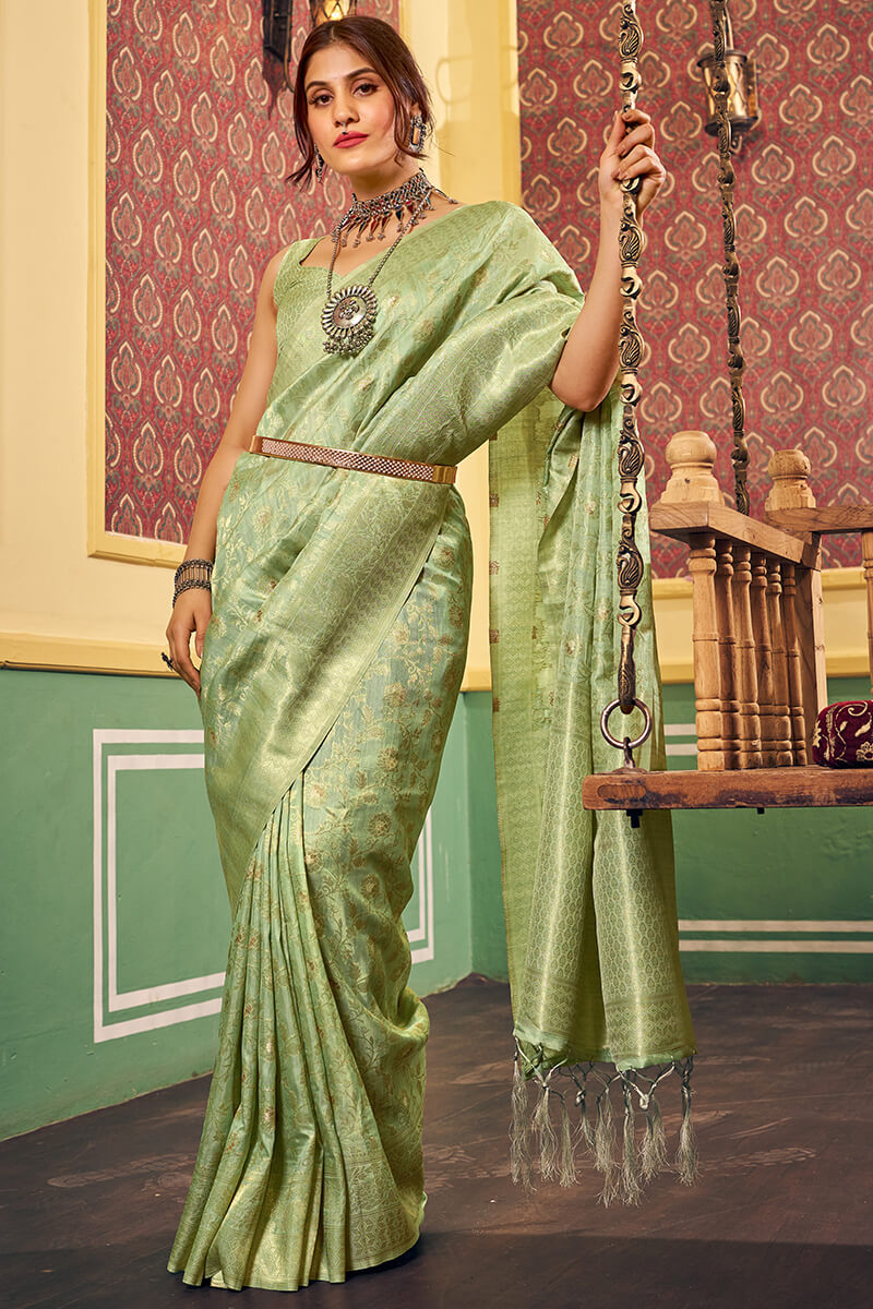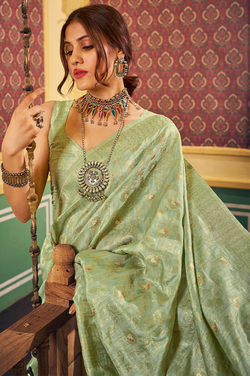Magnetic Pista Soft Banarasi Silk Saree With Propinquity Blouse Piece