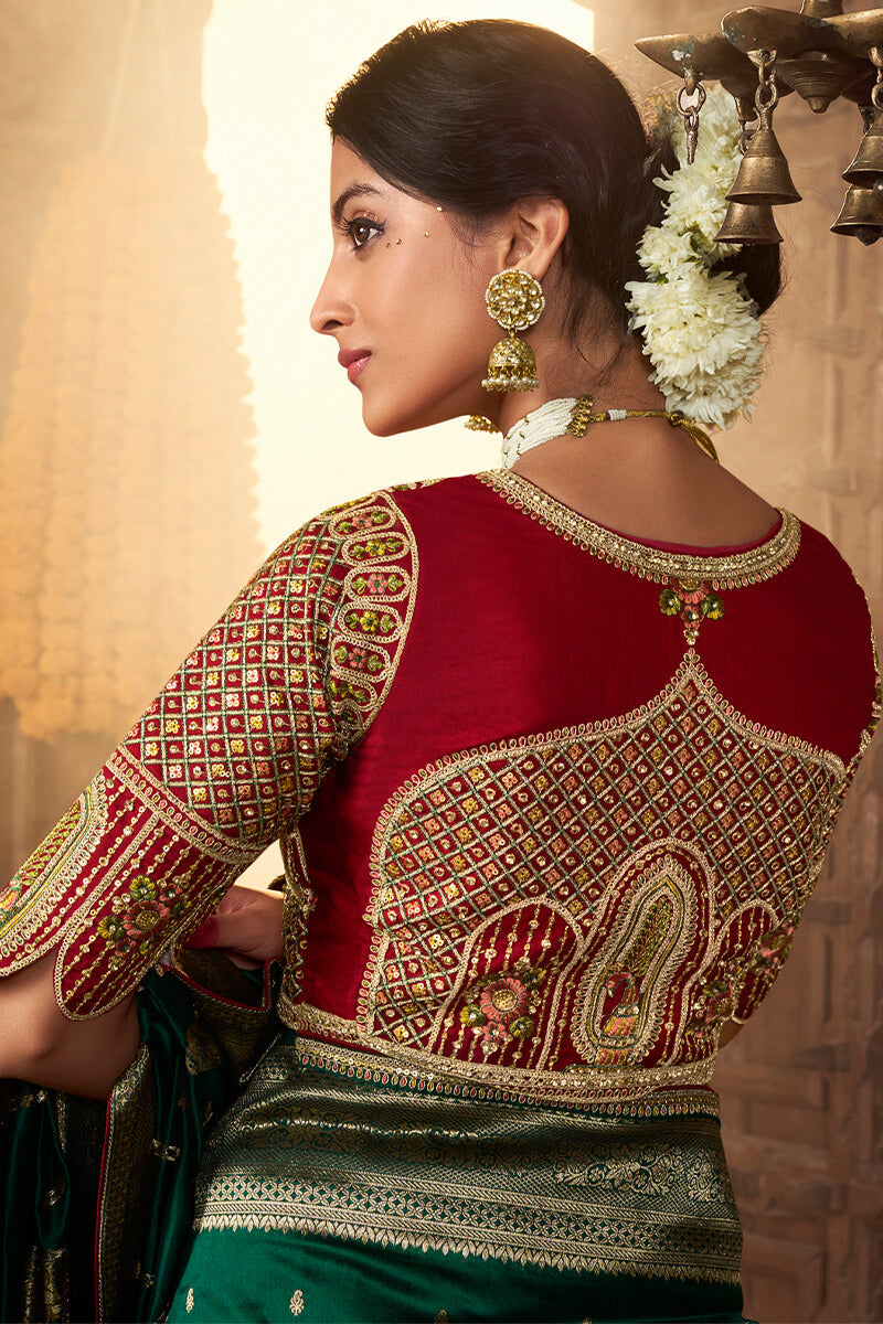Mesmeric Dark Green Pure Viscose Dola Silk Saree With Radiant Blouse Piece