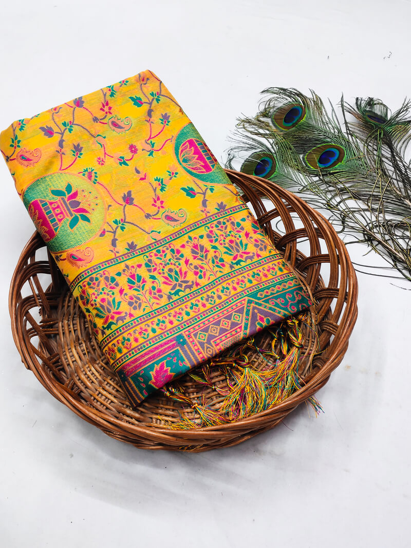 Nebula Yellow Pashmina Saree With Sonorous Blouse Piece