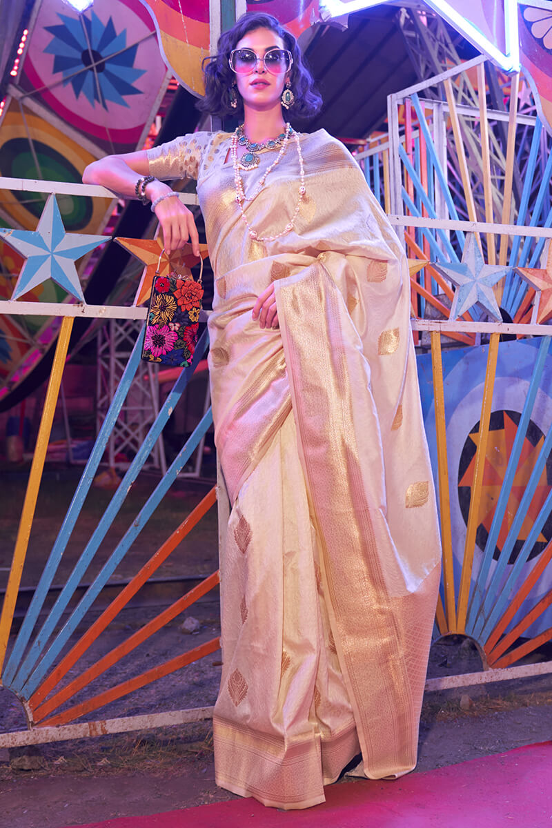 Prominent Beige Soft Banarasi Silk Saree With Desirable Blouse Piece