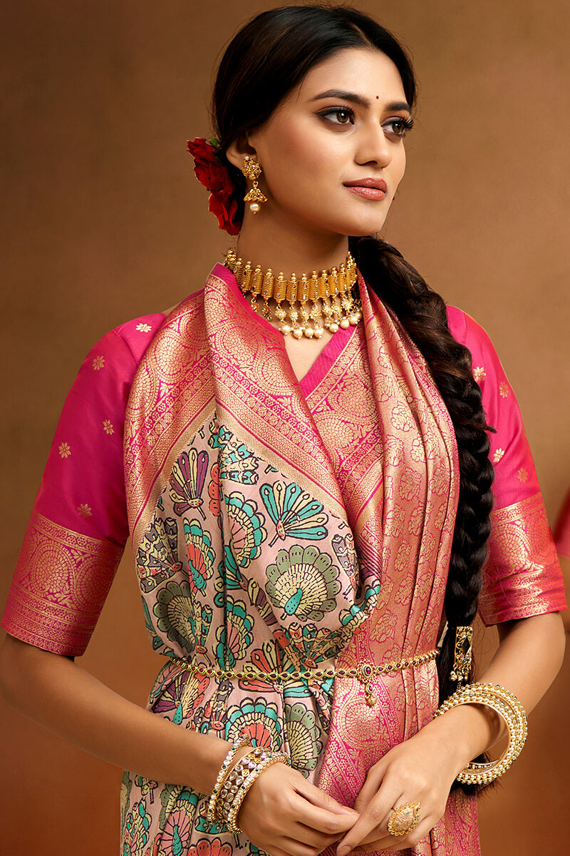 Ratatouille Beige Kalamkari Printed Saree With Rhapsodic Blouse Piece