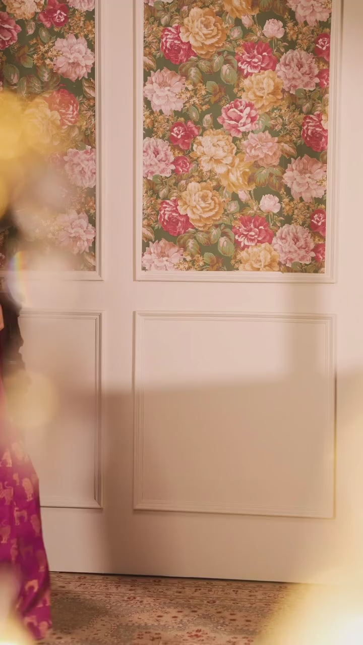 Blouse: Paired with a contrasting deep wine/purple silk blouse (as shown) to enhance the richness of the magenta base.