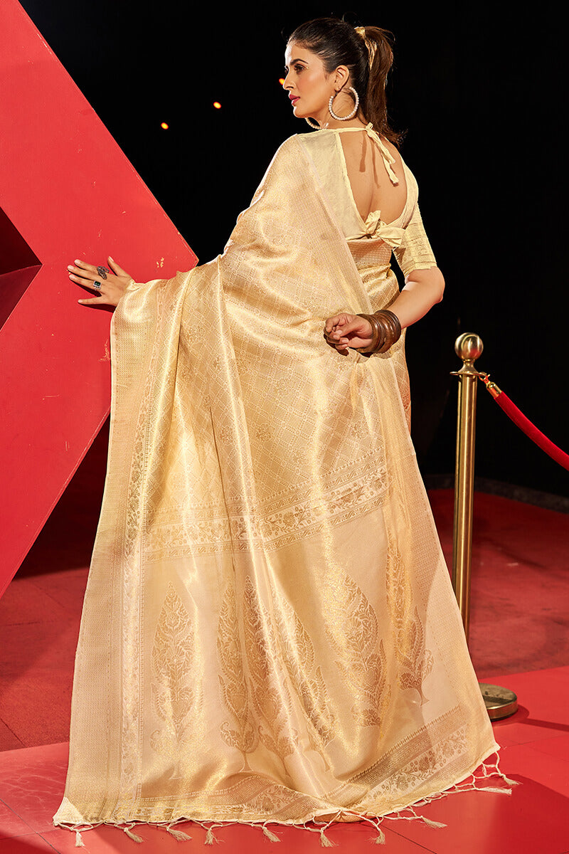 Sempiternal Beige Kanjivaram Silk Saree With Imbrication Blouse Piece