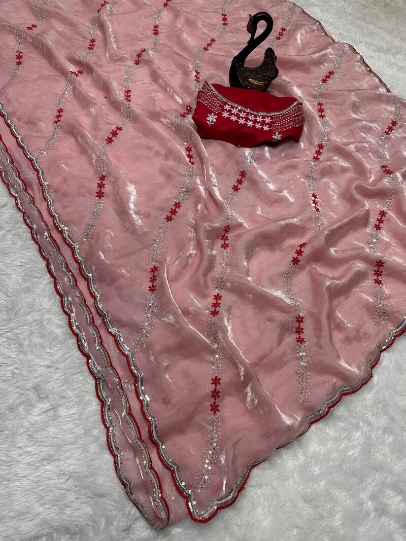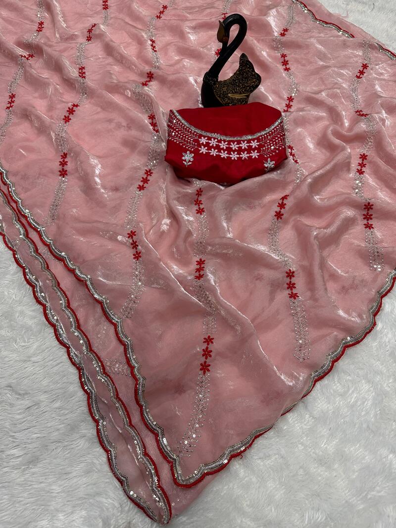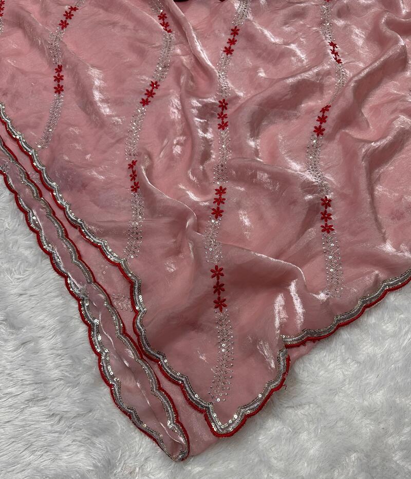 Seraglio Peach Sequence Work Fandy Silk Saree With Proficient Blouse Piece