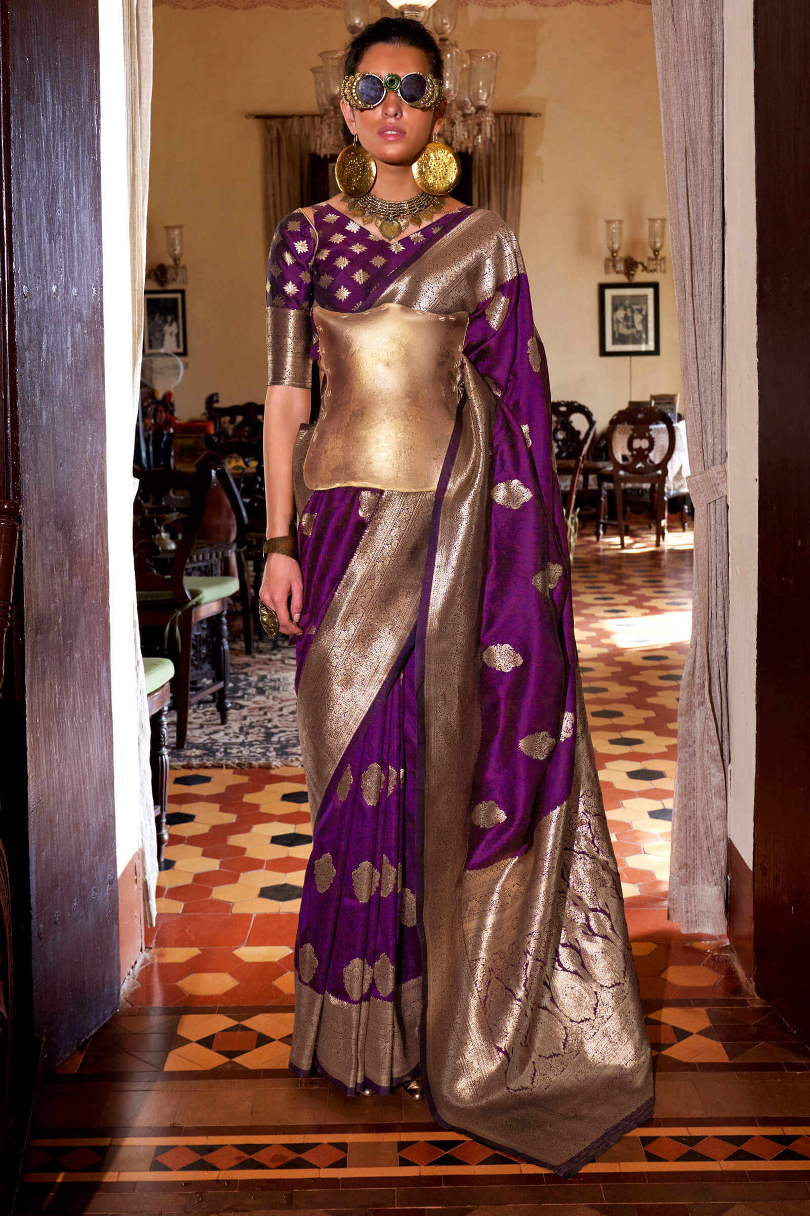 Sumptuous Purple Soft Banarasi Silk Saree With Designer Blouse Piece