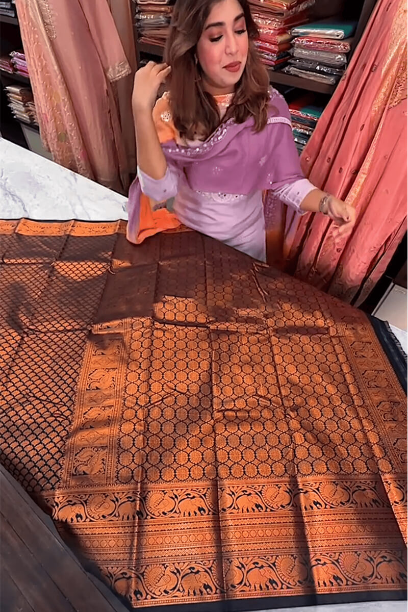 SAREE SPECIFICATIONS: Fabric: Soft Banarasi Silk Color: Navy Blue Work Type: Jacquard
