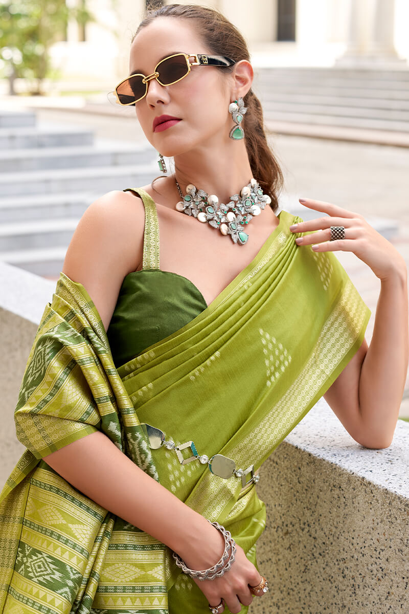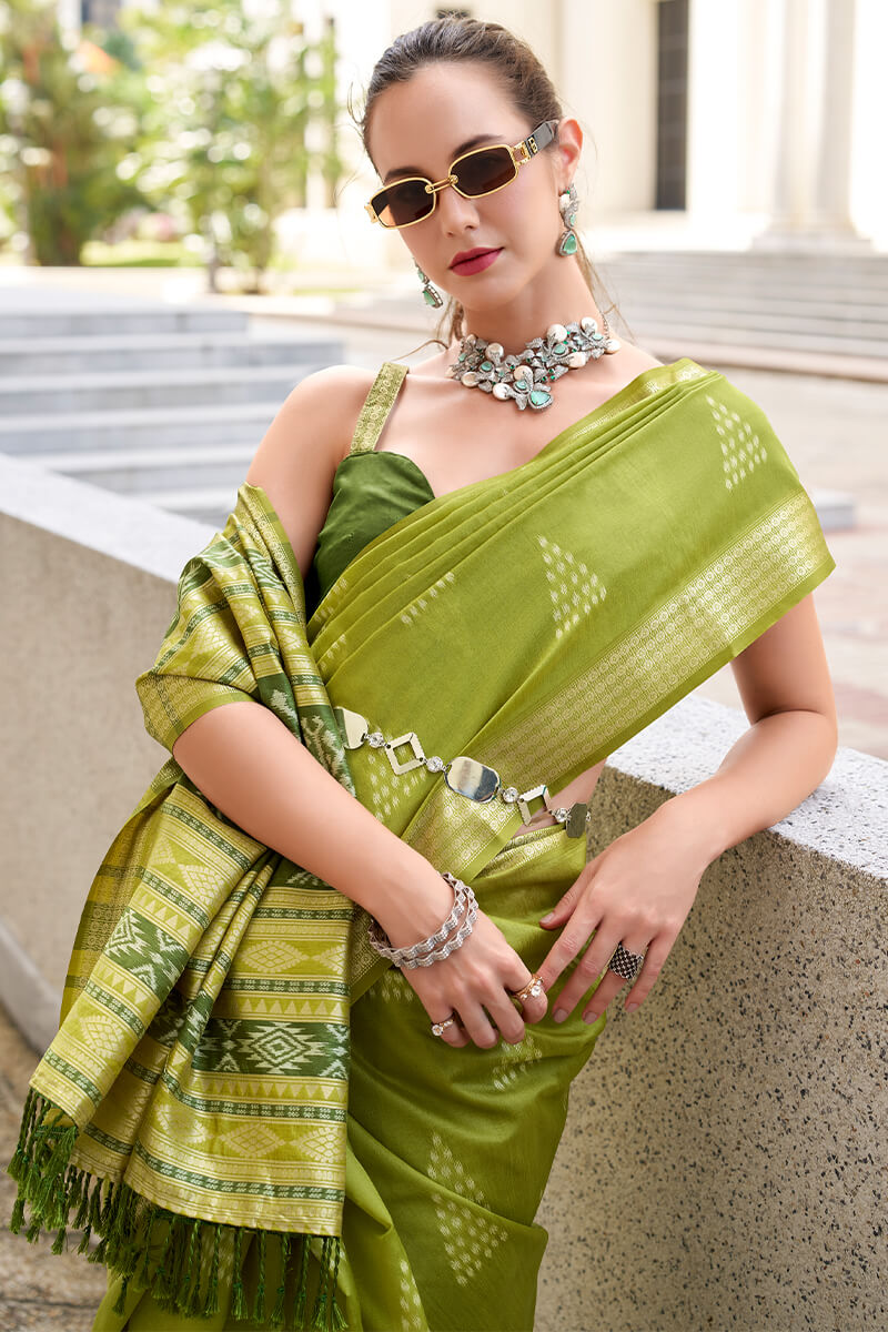 Verdant Green Soft Banarasi Silk Saree With Eclat Blouse Piece